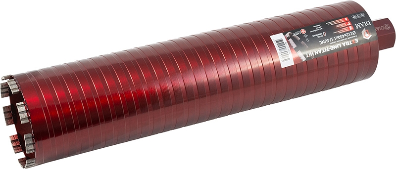 Алмазное сегментное сверло для сухого сверления с микроударом Diam Extra Line Titan Hit 112 мм (Диам Экстра Лайн Титан Хит 112 мм) предназначено для сухого алмазного бурения, в том числе и с микроударом, отверстий Ø 112 мм на сверлильных машинах / дрелях с микроударом и без микроудара в бетоне, железобетоне (армированном бетоне), бетонных строительных блоках, кирпиче, без подачи воды. Незаменимо в случаях, когда работы проходят в помещении, либо в ситуациях когда недопустимо загрязнение объекта, нет доступа к воде и иных ситуациях, предполагающих отсутствие охлаждения.
