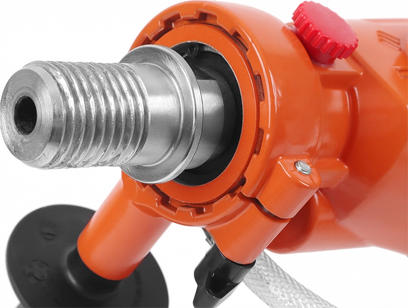 - Наличие трехскоростного редуктора позволяет выбрать оптимальную скорость бурения различных материалов алмазными коронками, а система регулируемой подачи воды в зону бурения не только облегчает сам процесс бурения, но и увеличивает ресурсность алмазных коронок
